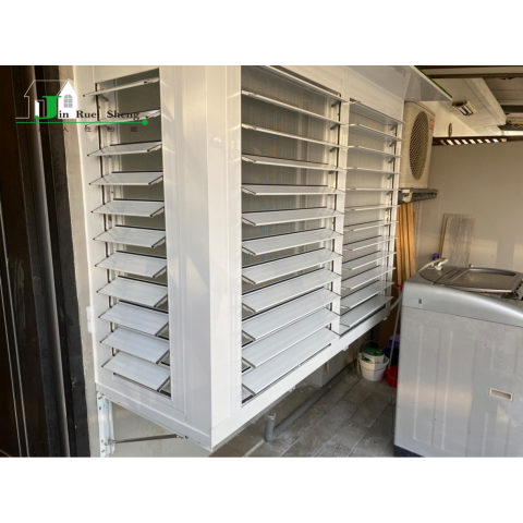 具備通風與遮蔽效果,可依需求調整葉片角度,兼顧採光、通風與隱私,並能有效遮蔽冷氣室外機、管線設備或儲藏空間,維持建築外觀整潔。