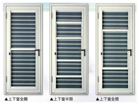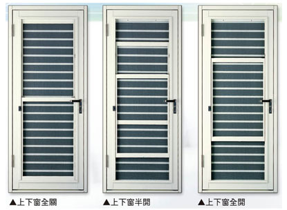 可做到防盜,紗窗,門扇三者合一,兼具美觀,節省空間,特殊三段式開啟方式。